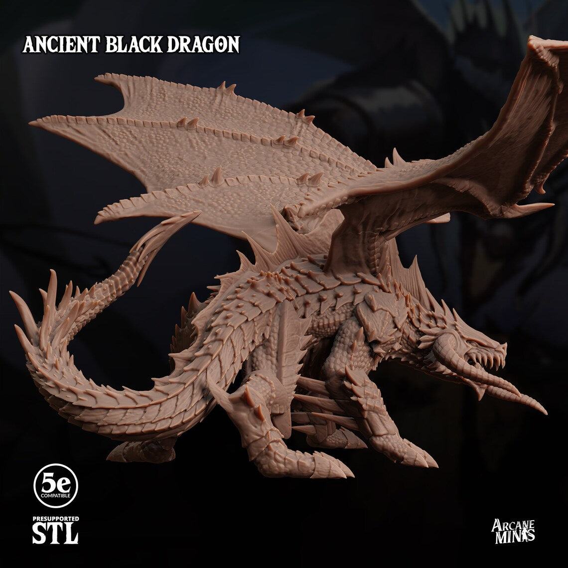 3D Printed Sordane Publishing Ancient Black Dragon 28 32mm D&D