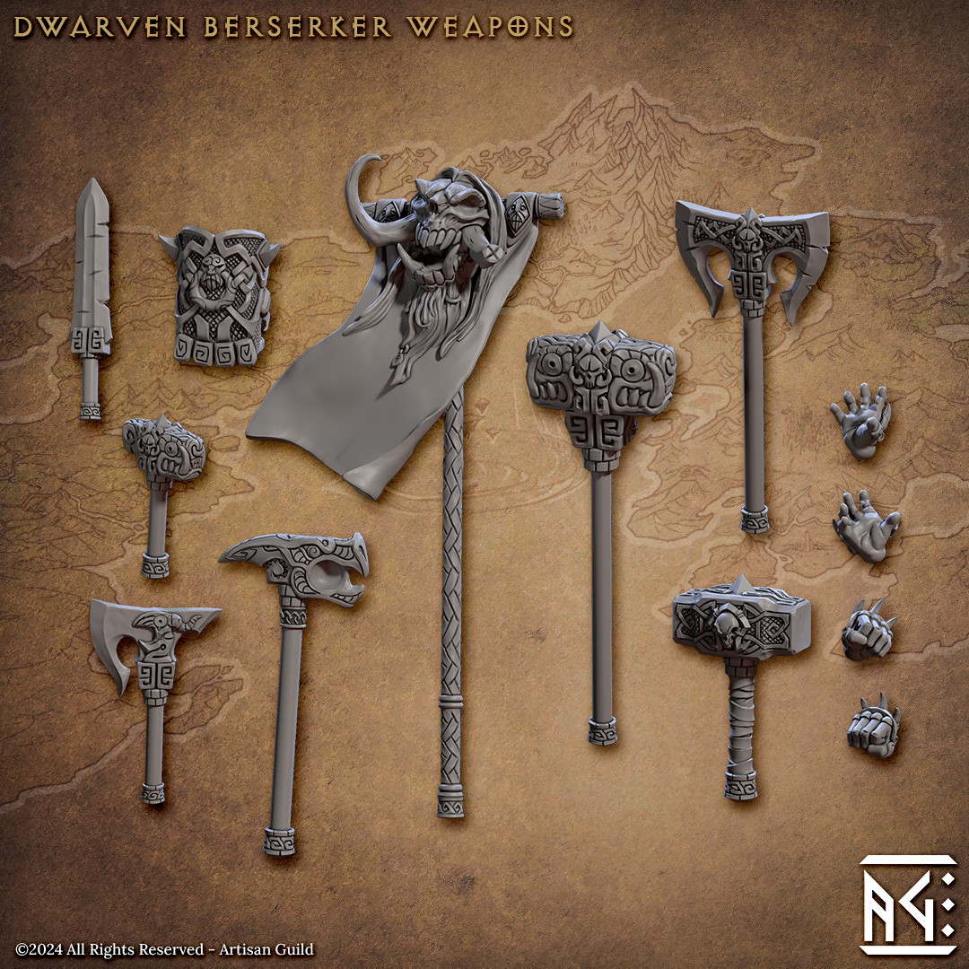 3D Printed Artisan Guild The Quest for Goldvein Dwarf Weapons Dwarf Berserkers Set 28mm 32mm