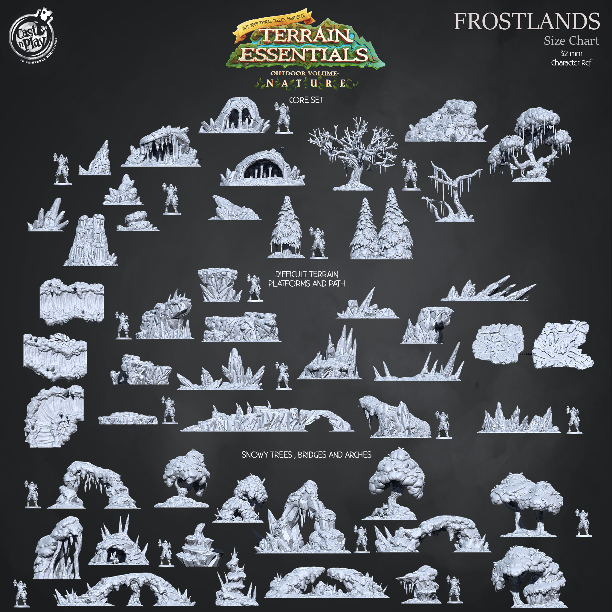 3D Printed Cast n Play Snowy Trees, Bridges and Arches Frostlands Terrain Set Terrain Essentials Nature 28mm 32mm D&D