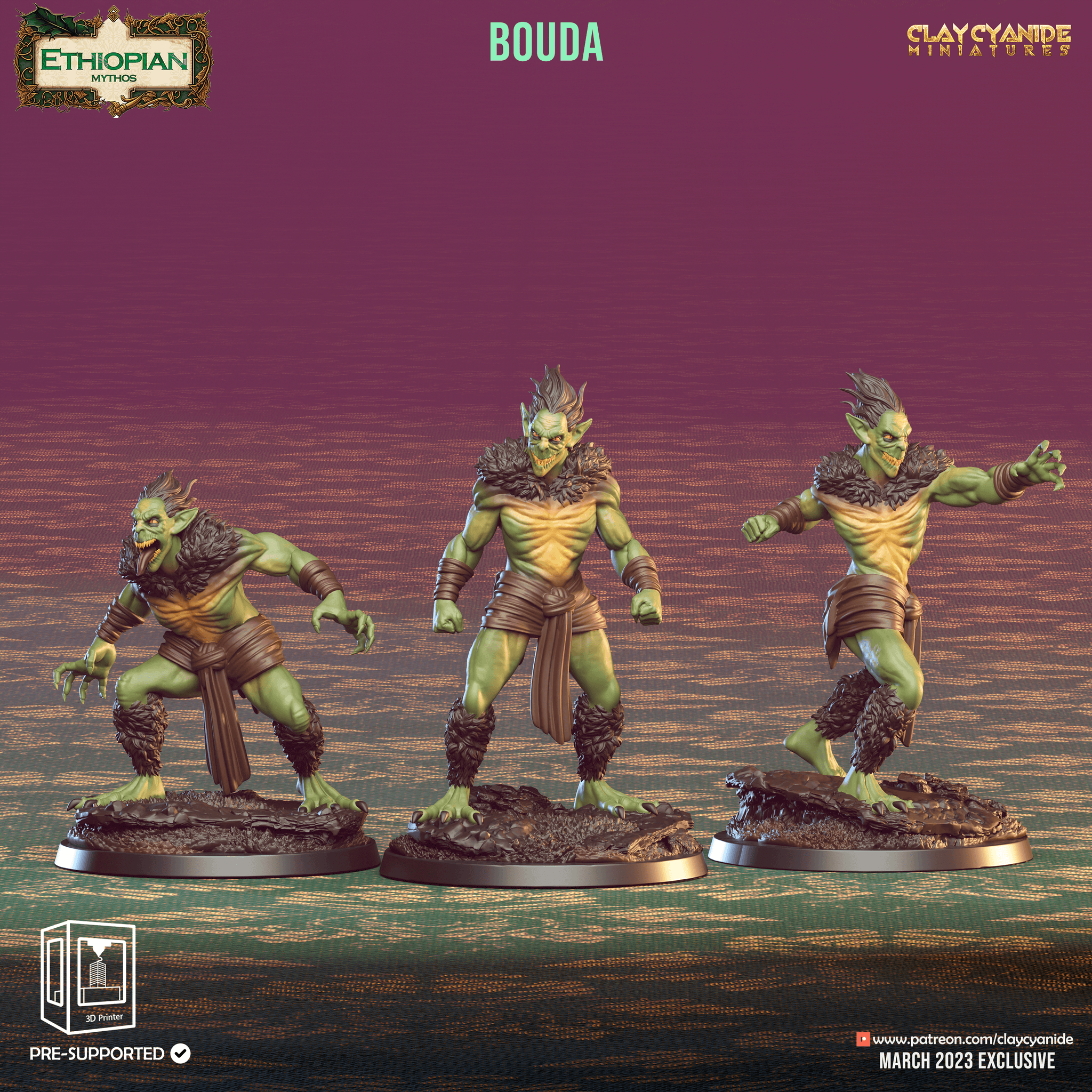 3D Printed Clay Cyanide Bouda Ethiopian Mythos 28 32 mm D&D