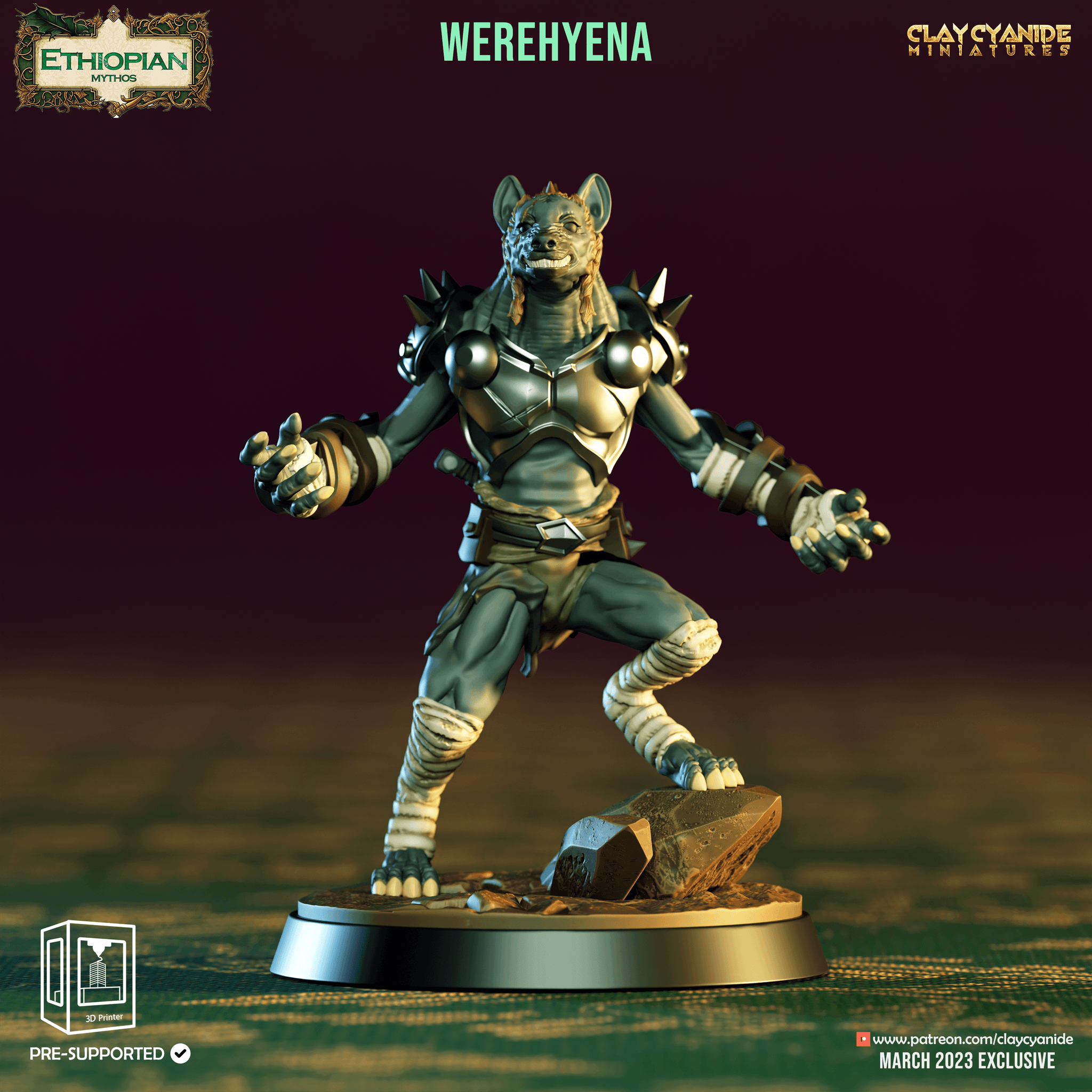 3D Printed Clay Cyanide Werehyenas Ethiopian Mythos 28 32 mm D&D