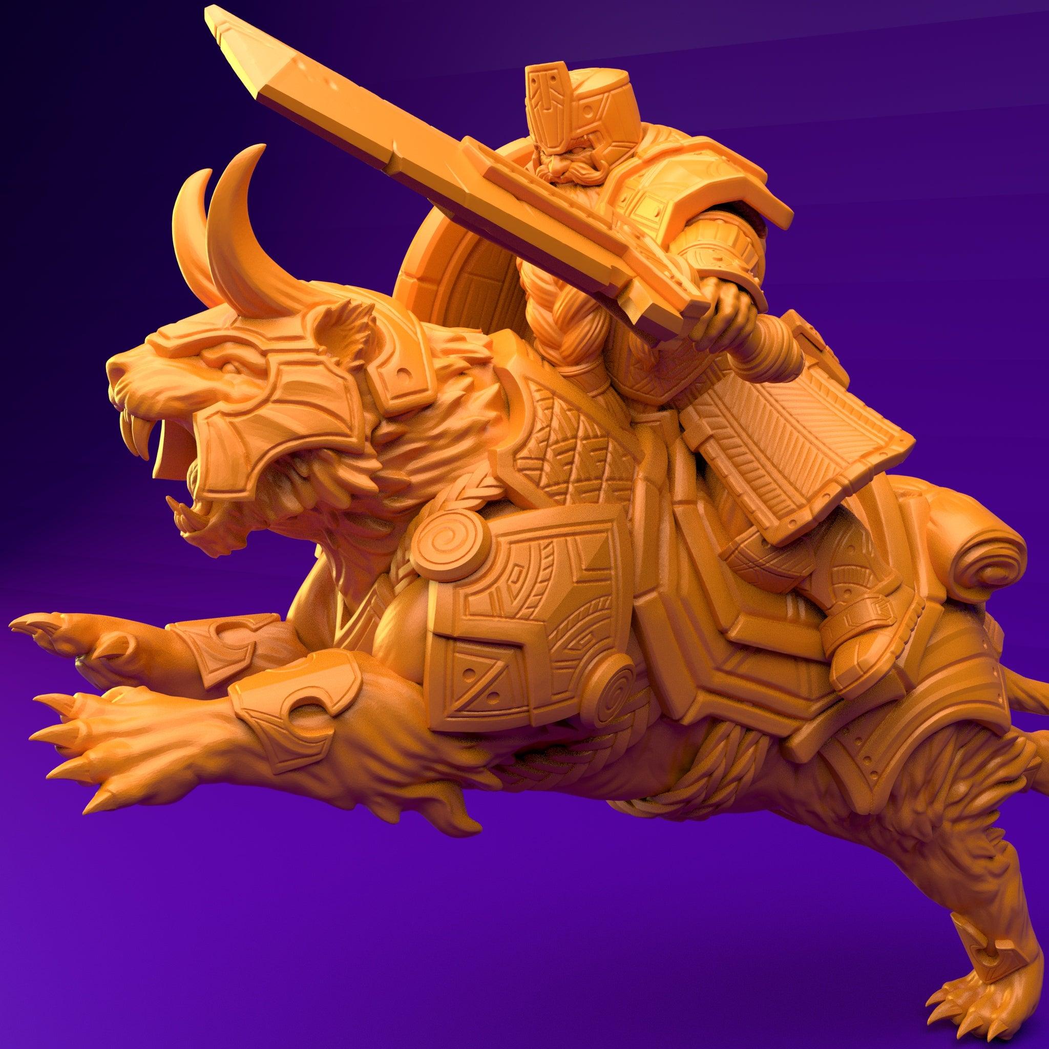 3D Printed Dwarf’s Army Nafarrate - Dwarf Tiger Rider Set 28mm 32mm Ragnarok D&D