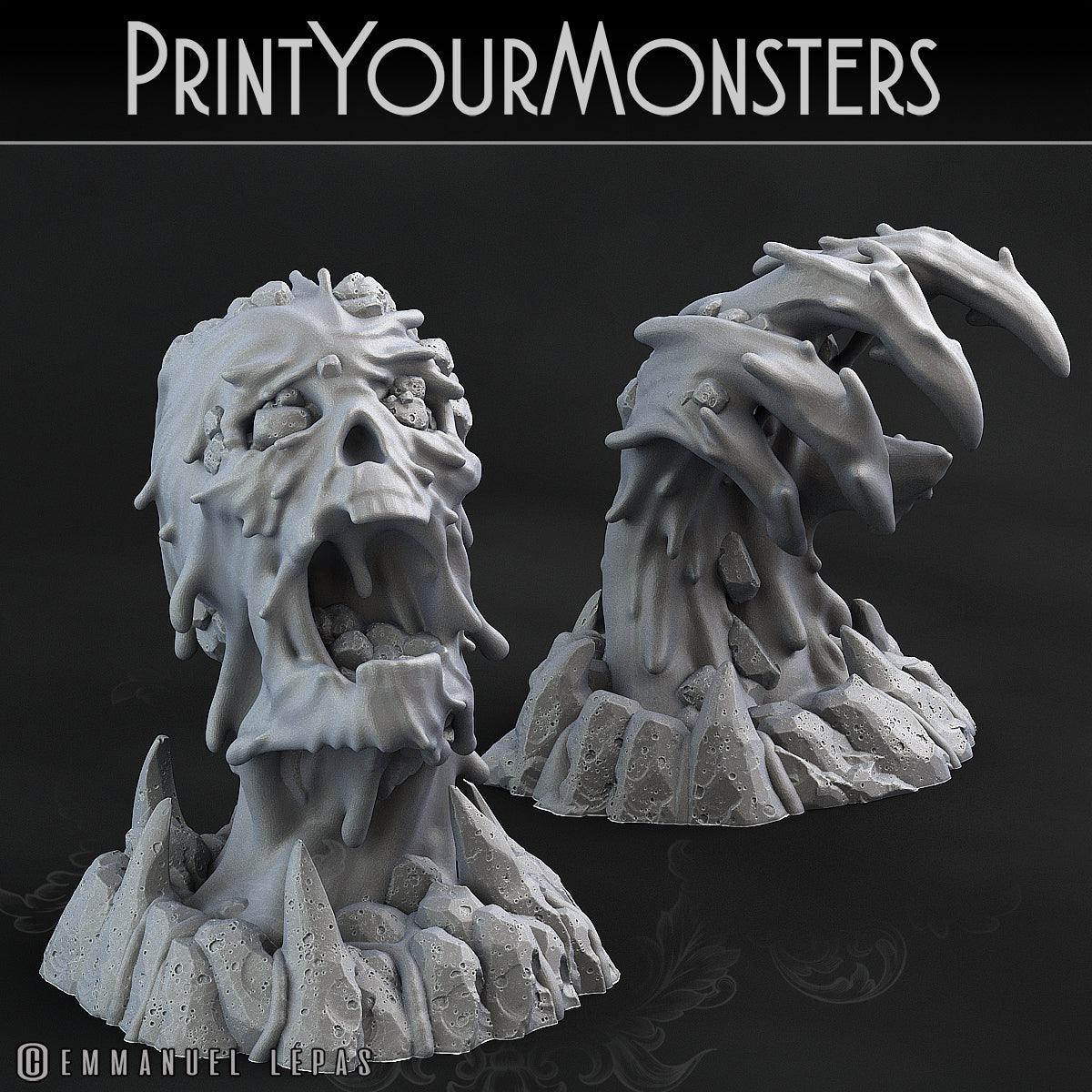 3D Printed Print Your Monsters Infernal Magma Skull and Hand 28mm - 32mm D&D Wargaming